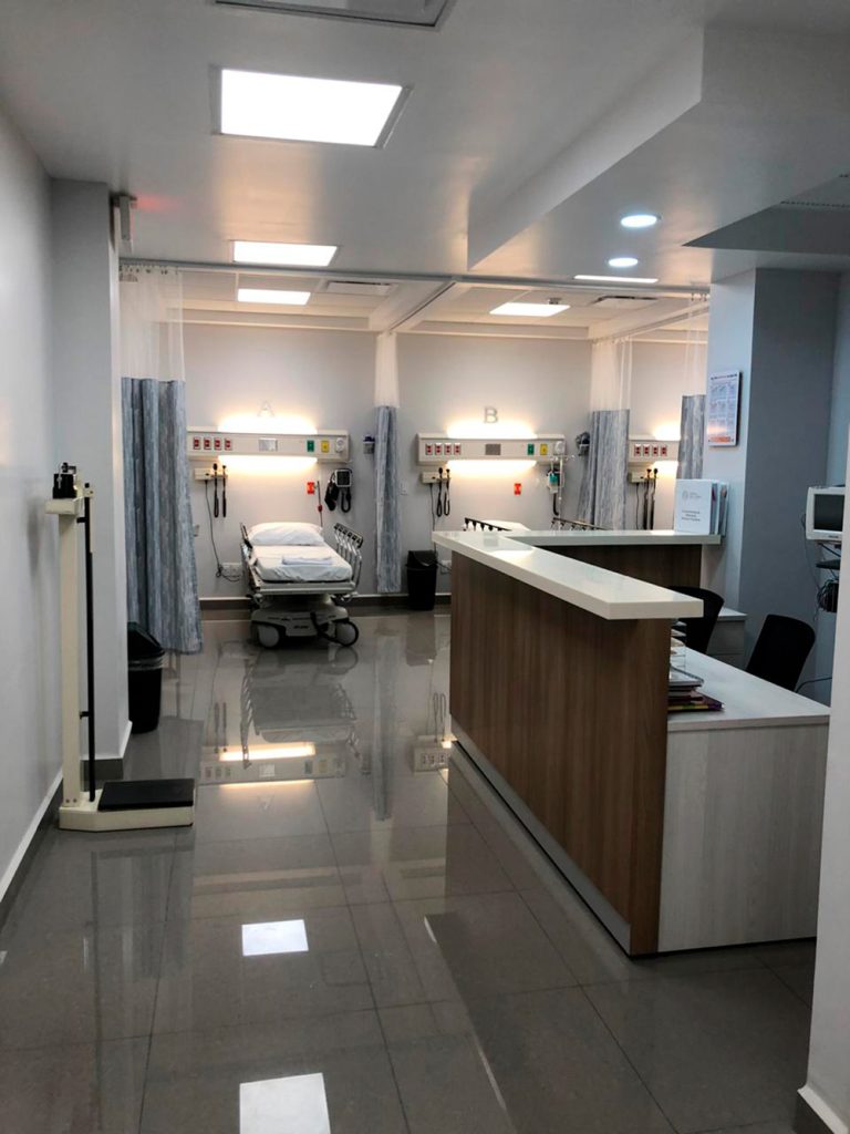 Sobre este Proyecto Médico: Clínica y hospital especializado de vanguardia, siendo una de las primeras unidades de atención médica integral en América Latina para el tratamiento del dolor crónico y cuidados paliativos. Este centro de atención médica cuenta con características de diseño arquitectónico específicas, como una serie de ventanas desfasadas que regulan la luz natural para cada área, y salas de infusión para diversas especialidades del hospital.